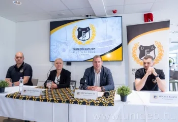 Megtartotta hagyományos szezonnyitó sajtótájékoztatóját a Debreceni Egyetem NB I-es férfi kosárlabdacsapata. A szerdai eseményen Lóczi Lászlóné Kovács Marianna ügyvezető, Becsky István szakosztályvezető, Pethő Ákos vezetőedző és Mócsán Bálint csapatkapitány vezette fel az előttünk álló kiírást.